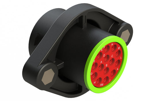 AHDP02-18-14PN-BRA 14 Position Panel Mount Receptacle, Pin, Shell Size 18, Normal Diameter Seal (Green Adapter), Backshell Ring Adapter