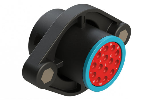 AHDP02-18-14PR-SRA 14 Position Sealed Panel Mount Receptacle, Pin, Shell Size 18, Reduced Diameter Seal (Blue Adapter), Smooth Ring Adapter