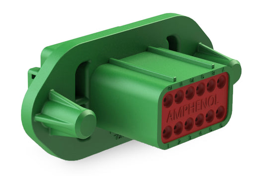 AT04-12PC-PM14 12 Position Receptacle, Pin, Nickel, Panel Mount, Self-Threading, Reduced Diameter Seal, Cap, Keyed C. DT04-12PC-CL11