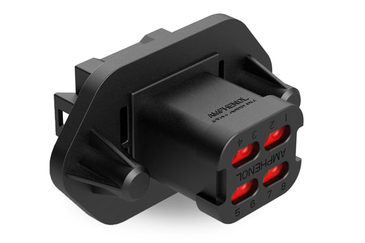 Amphenol Sine Systems’ PanelMate™ Family of receptacles are engineered with a one-piece, sealed, flanged design for rapid and secure mounting. Their durable, high-temperature, silicone, facial seal provides a barrier of protection from lubricating oils, hydraulic fluids and fossil fuels to withstand the challenges and complexities of harsh environment applications. Also available in a two-piece, sonically-welded, flange design for applications requiring an externally operated connection with 4 pass through holes. All PanelMate™ product lines accept A Series™ components and are comparable with other industry standard mating connectors.