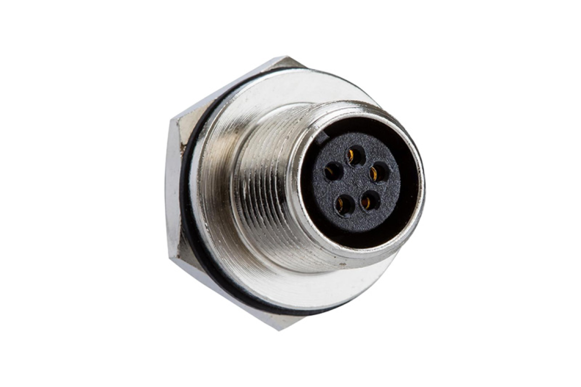 M10.5 Metric Circular Connector, Metal, 2A, 05 pins, Male Connector, Female Contact, Hexagonal, Screw Thread, Solder, Receptacle, Rear Fastened, IP67 Unmated