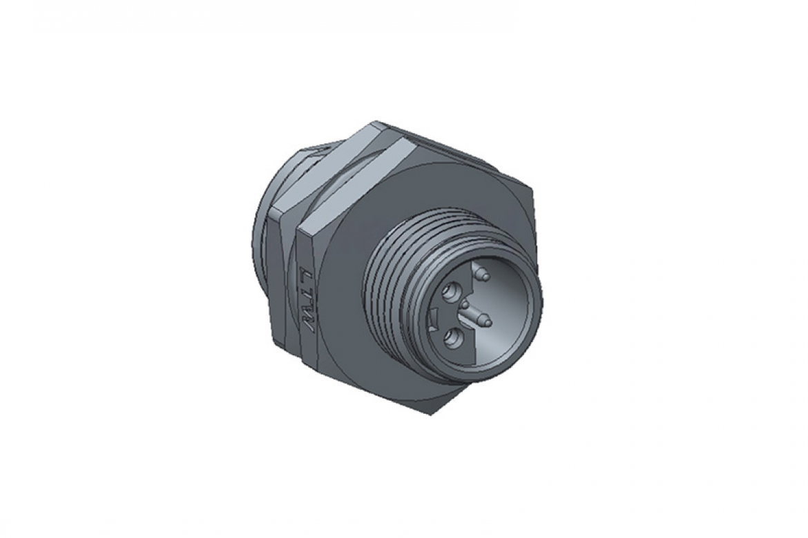 M12 Metric Circular Connector, I Code, Metal, 4A, 05 pins, Male Connector, Female (Power) + Male (Signal) Contact, Hexagonal, M16*1.5, Screw Thread, Solder, Receptacle, Rear Fastened, Panel Thickness 4.5, IP68 / IP69K