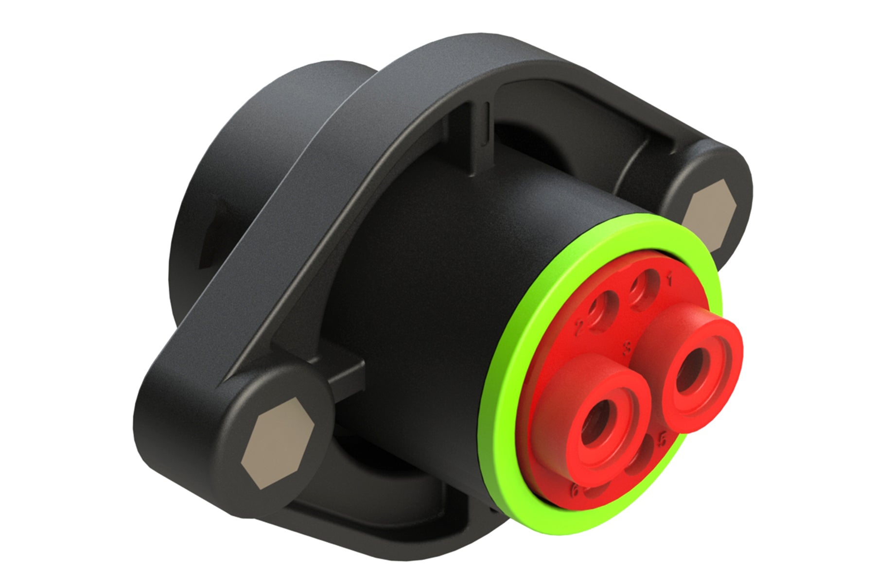 6 Position Sealed Panel Mount Receptacle, Pin, Shell Size 18, Normal Diameter Seal (Green Adapter), Smooth Ring Adapter