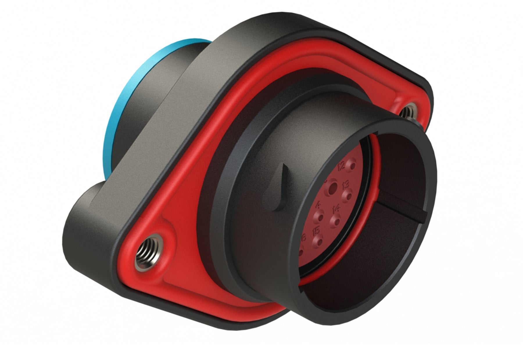 20 Position Sealed Panel Mount Receptacle, Pin, Shell Size 18, Reduced Diameter Seal (Blue Adapter), Smooth Ring Adapter