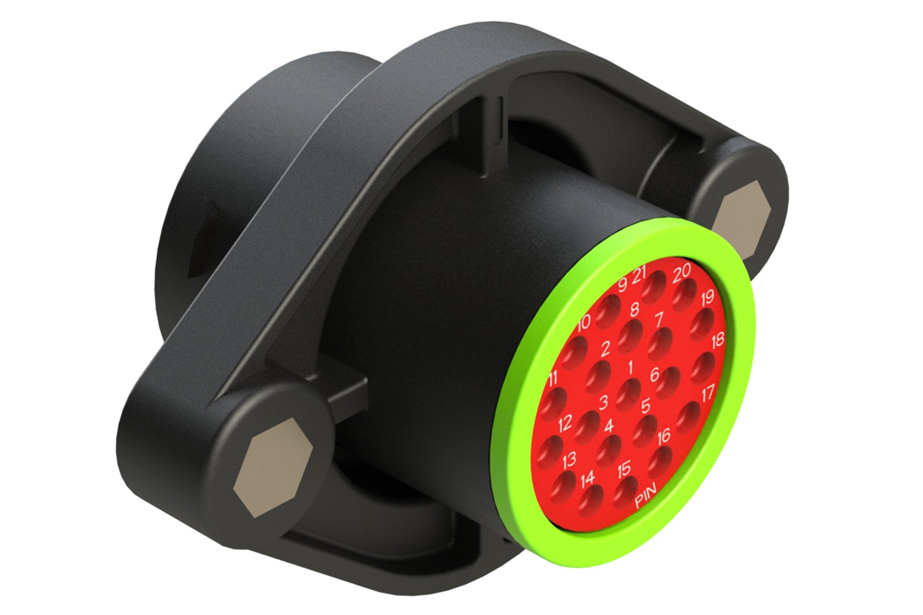 21 Position Sealed Panel Mount Receptacle, Pin, Shell Size 18, Normal Diameter Sea (Green Adapter)l, Smooth Ring Adapter