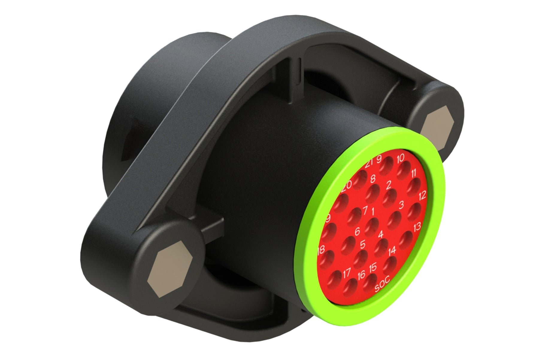 21 Position, Sealed Panel Mount Receptacle, Socket, Shell Size 18, Normal Diameter Seal (Green Adapter), Smooth Ring Adapter