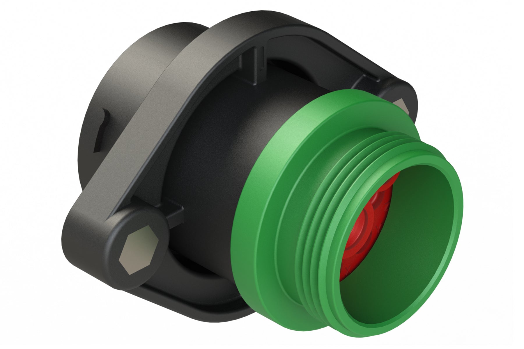 9 Position Sealed Panel Mount Receptacle, Pin, Shell Size 24, Normal Diameter Seal (Green Adapter), Small Thread Adapter