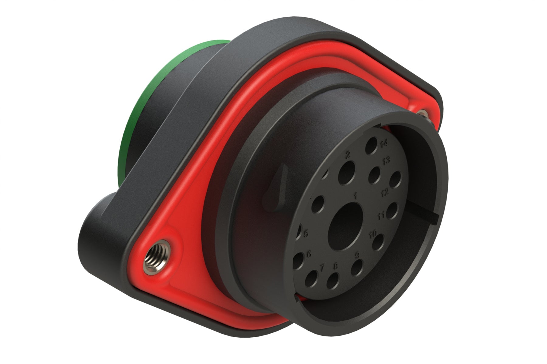 14 Position Panel Mount Receptacle, Socket, Shell Size 24, Normal Diameter Seal (Green Adapter), Smooth Ring Adapter