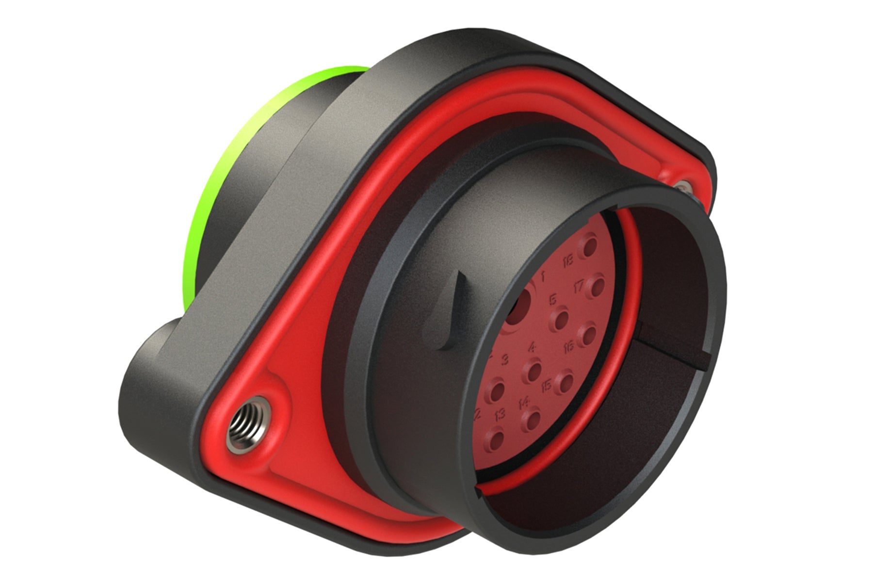 18 Position Sealed Panel Mount Receptacle, Pin, Shell Size 24, Normal Diameter Seal (Green Adapter), Smooth Ring Adapter