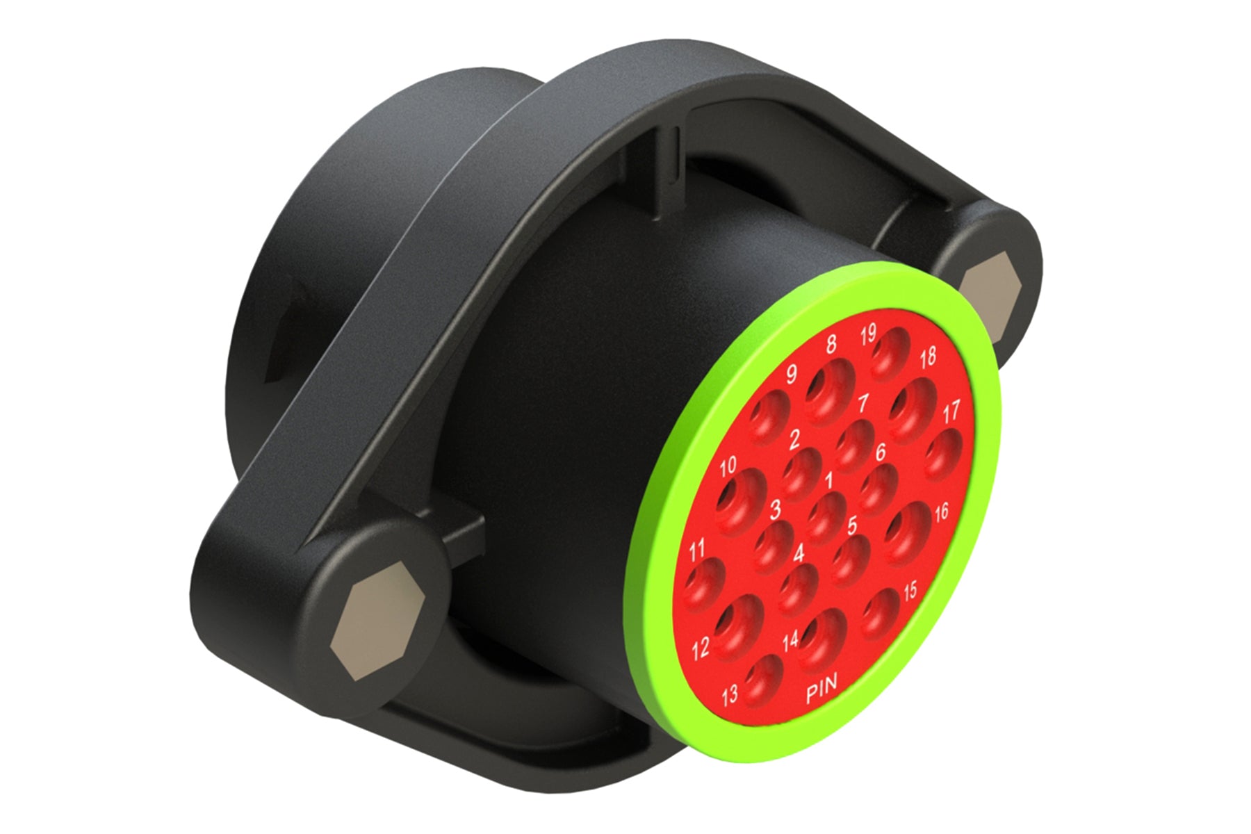 19 Position Sealed Panel Mount Receptacle, Pin, Shell Size 24, Normal Diameter Seal (Green Adapter), Smooth Ring Adapter
