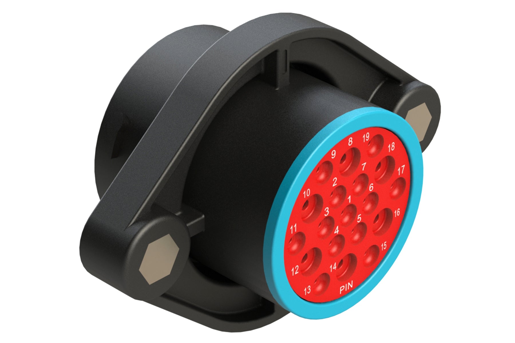 19 Position Sealed Panel Mount Receptacle, Pin, Shell Size 24, Reduced Diameter Seal (Blue Adapter), Smooth Ring Adapter