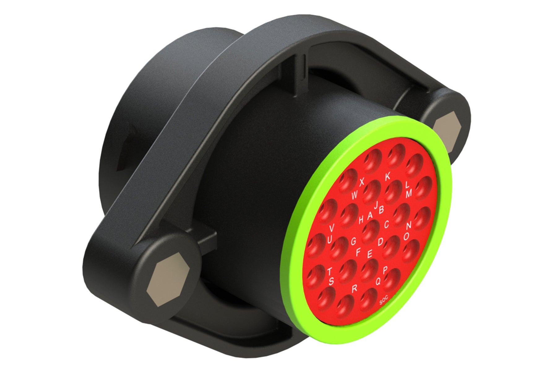 23 Position Sealed Panel Mount Receptacle, Socket, Shell Size 24, Normal Diameter Seal (Green Adapter), Smooth Ring Adapter