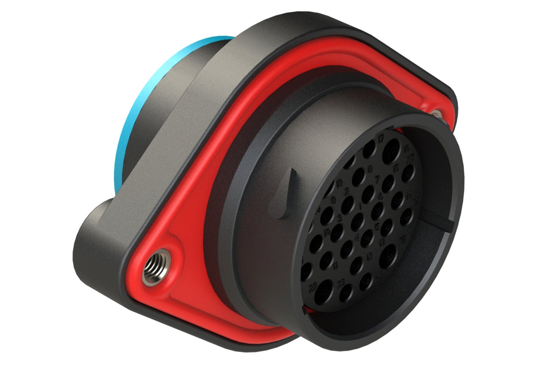 27 Position Sealed Panel Mount Receptacle, Socket, Shell Size 24, Reduced Diameter Seal (Blue Adapter), Smooth Ring Adapter