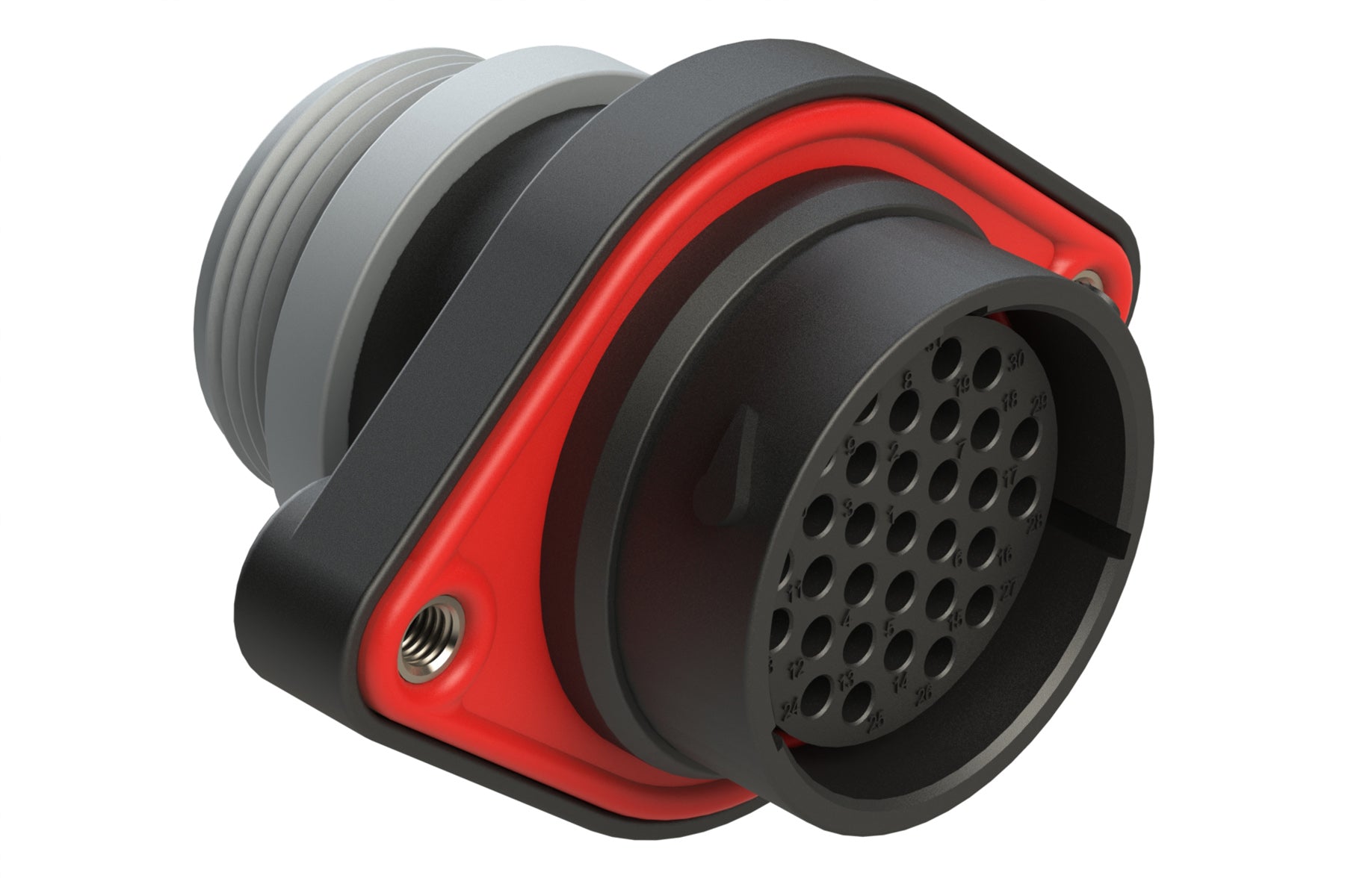 31 Position Panel Mount Receptacle, Socket, Shell Size 24, Thin Diameter Seal (Grey Adapter), Small Thread Adapter