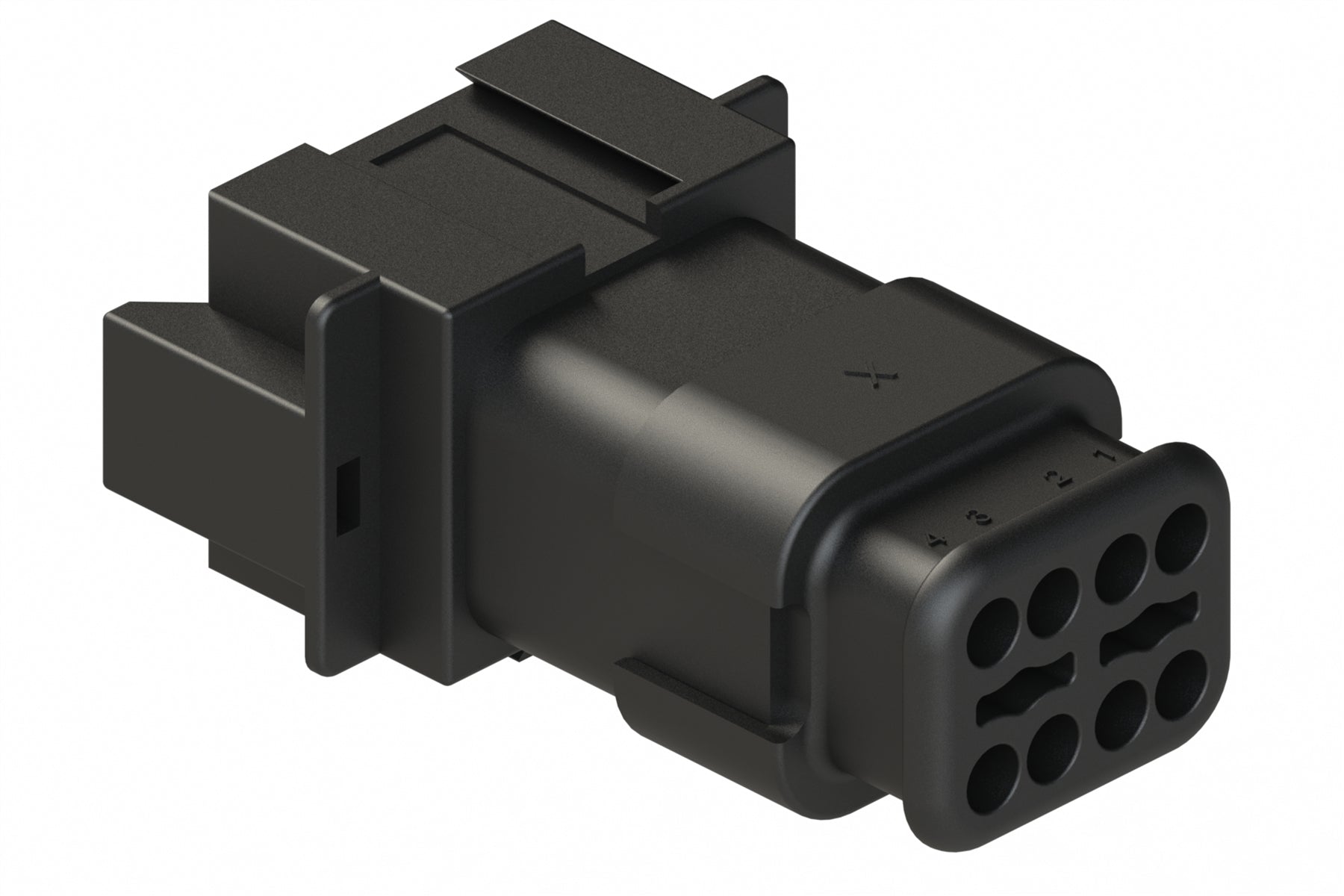 8 position Pin receptacle key position D, with strain relief endcap, black
