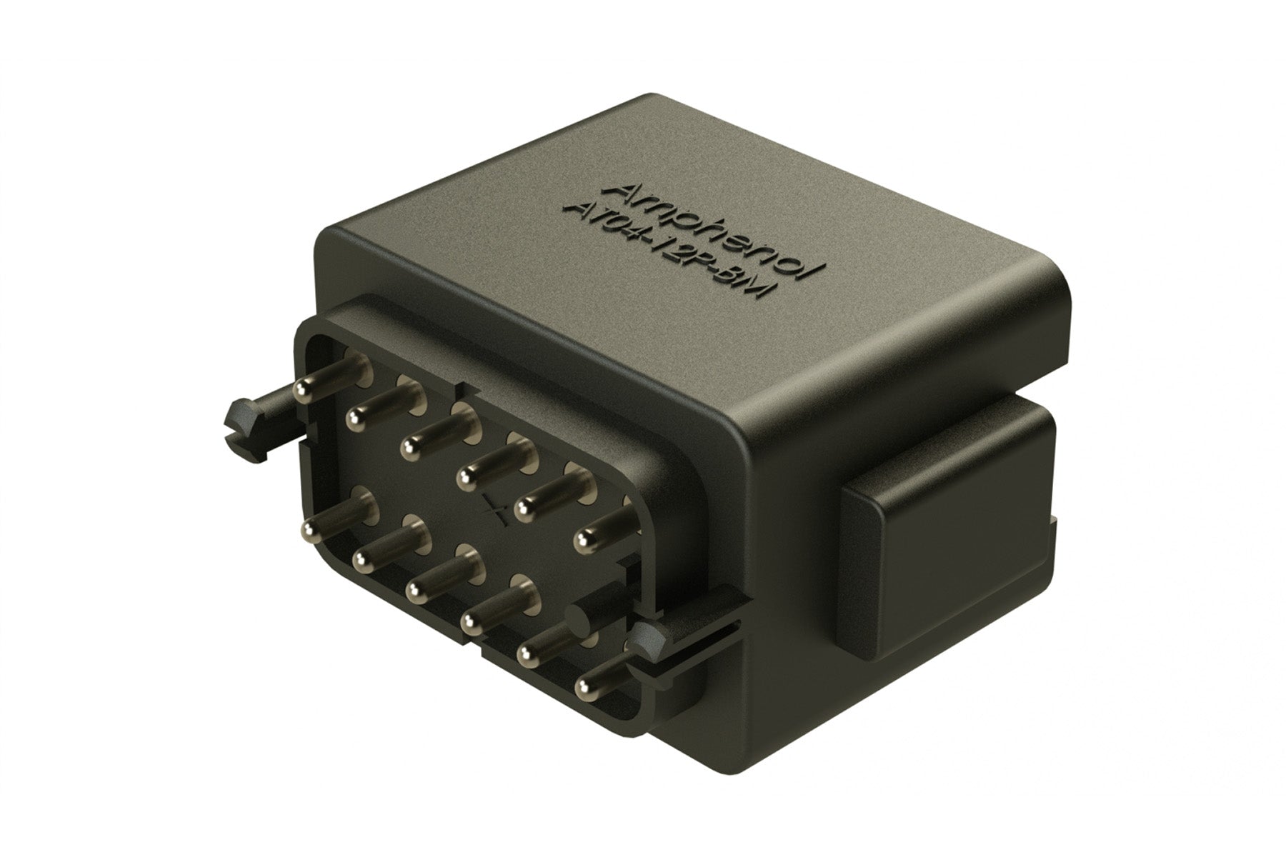 AT04-12PB-BM03 12 Position PCB Flangeless (Snap Fit) Board Mount Receptacle, Pin, Nickel Contact Plating, No Potting, Black. DTF15-12PB