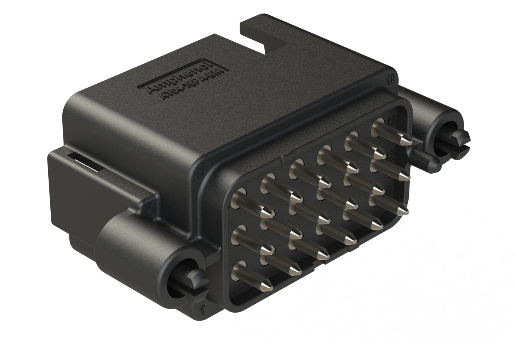 AT04-18PA-BM03BK 18 Position PCB Board Mount Receptacle, Straight, Nickel Plated Contacts, Snap-Fit, Keyed A, Black