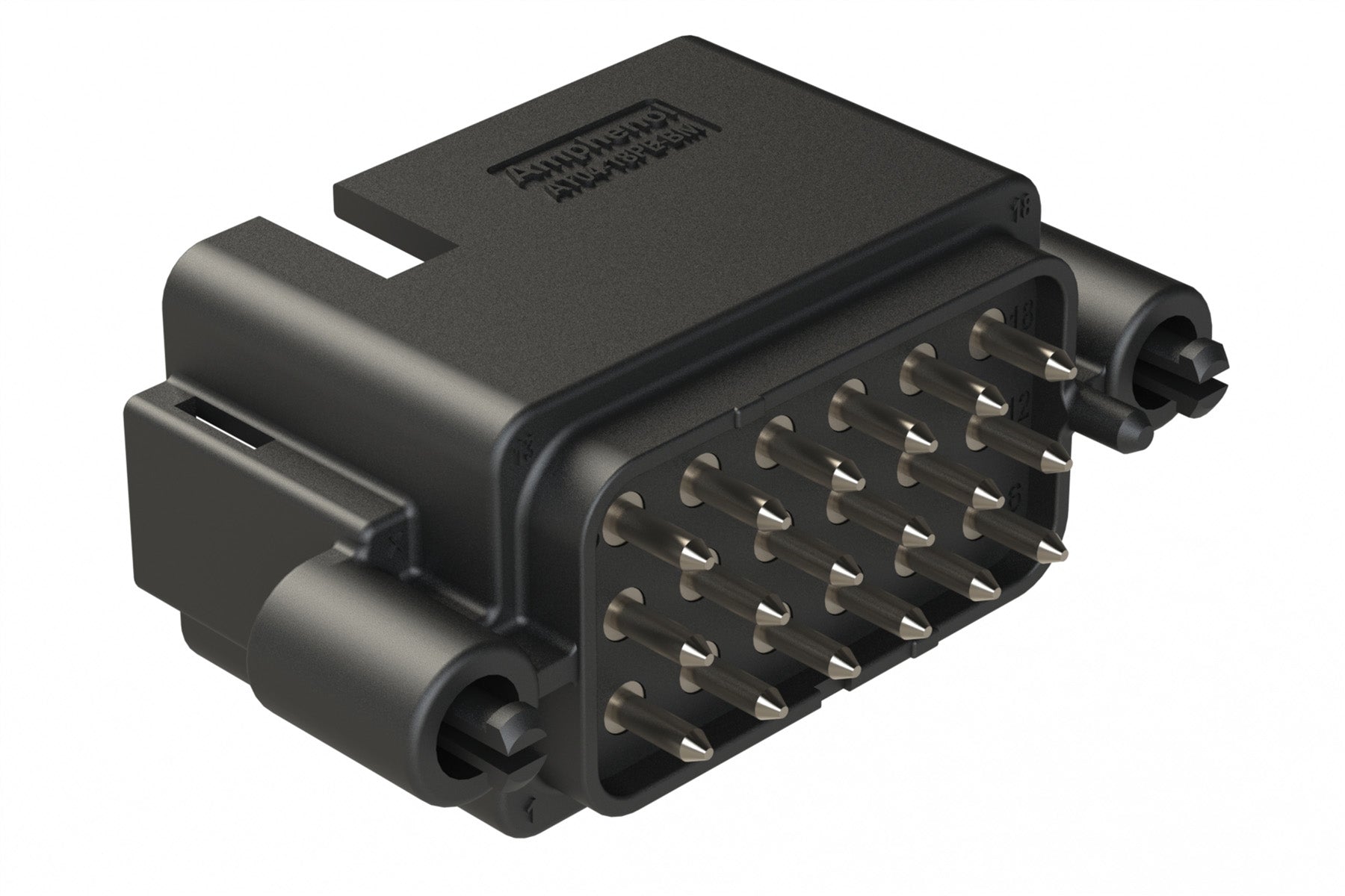 AT04-18PE-BM03BK 18 Position PCB Board Mount Receptacle, Straight, Nickel Plated Contacts, Snap-Fit, Keyed E, Black