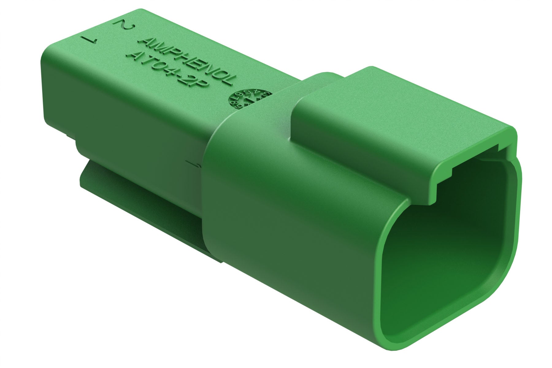 AT04-2P-RD01GRN 2-Way Receptacle, Male Connector with Reduced Diameter Seal (E-Seal), Green