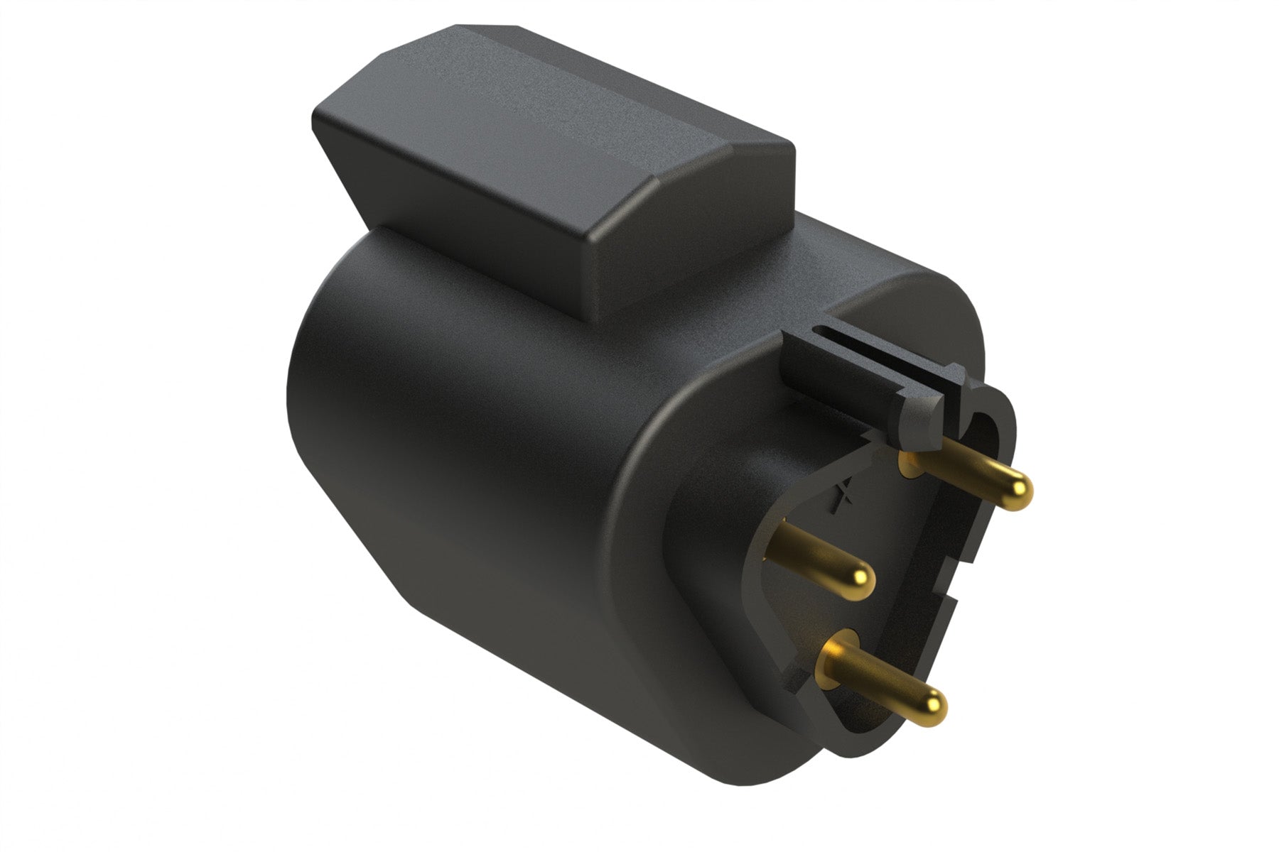 3 Position PCB Receptacle, Pin, Straight, Gold Plated, Snap-Fit, Black