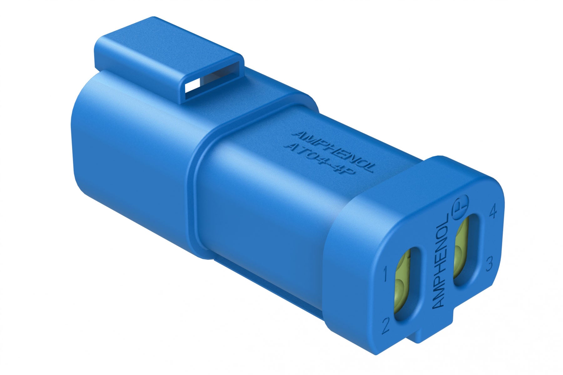 AT04-4P-MM01BLU 4-Way Receptacle, Male Connector with Reduced Diameter Seal (E-Seal) and End Cap, Blue