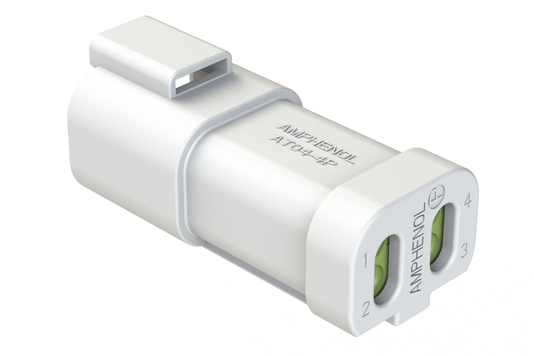 AT04-4P-MM01WHT 4-Way Receptacle, Male Connector with Reduced Diameter Seal (E-Seal) and End Cap, White