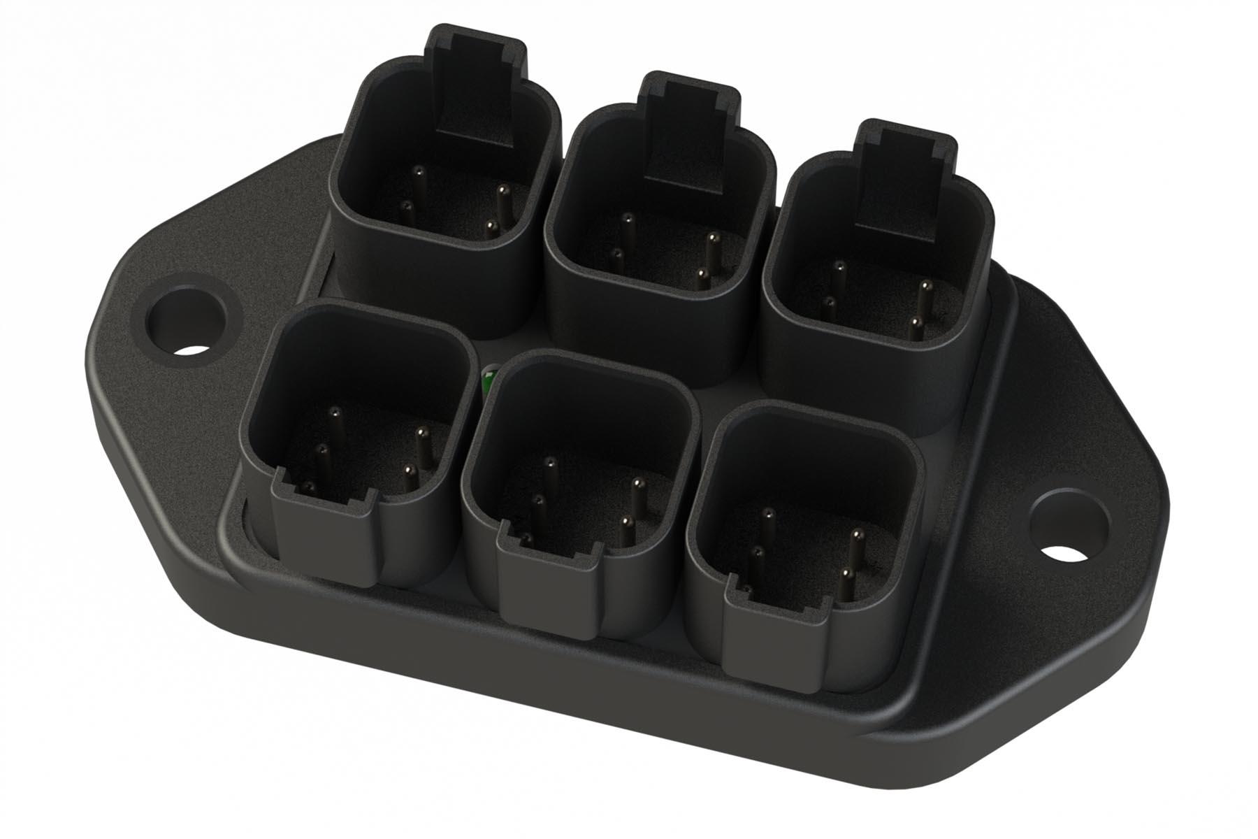 AT04-6PBM04-X601 36 Position Power Splitter Control Module, 6 Pin x 6 Device Layout, Nickel Contacts, 13A, Green LED, Potted, Black