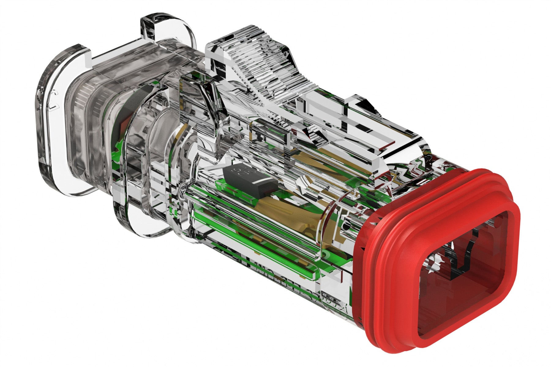 AT06-2S-LED1224V-OMC 2 Position LED Overmold Plug, Socket, LED 12 V or 24 V, Clear Body, RVP Circuit, Green LED