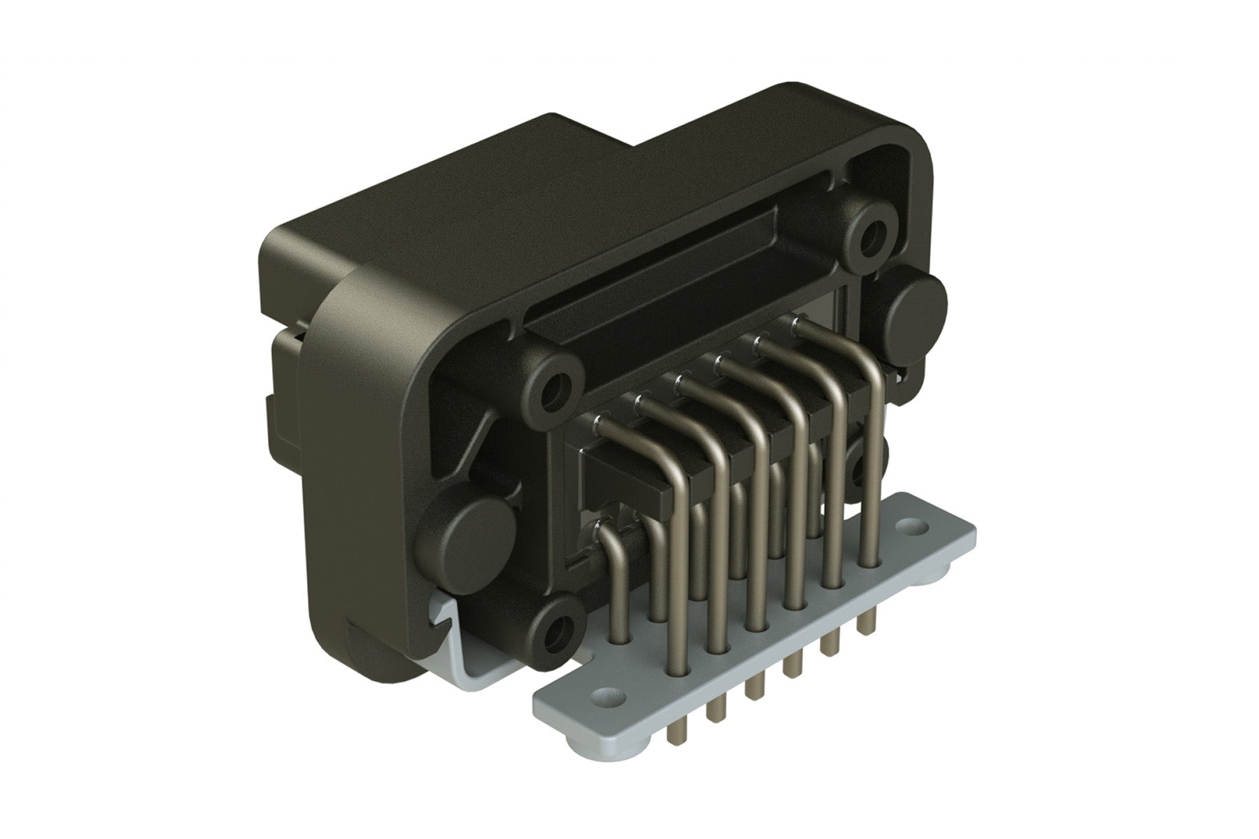 12 Position Right Angle Flange Mount PCB Receptacle, Potted, Black, Tin Plated Contacts Included. Keyed B