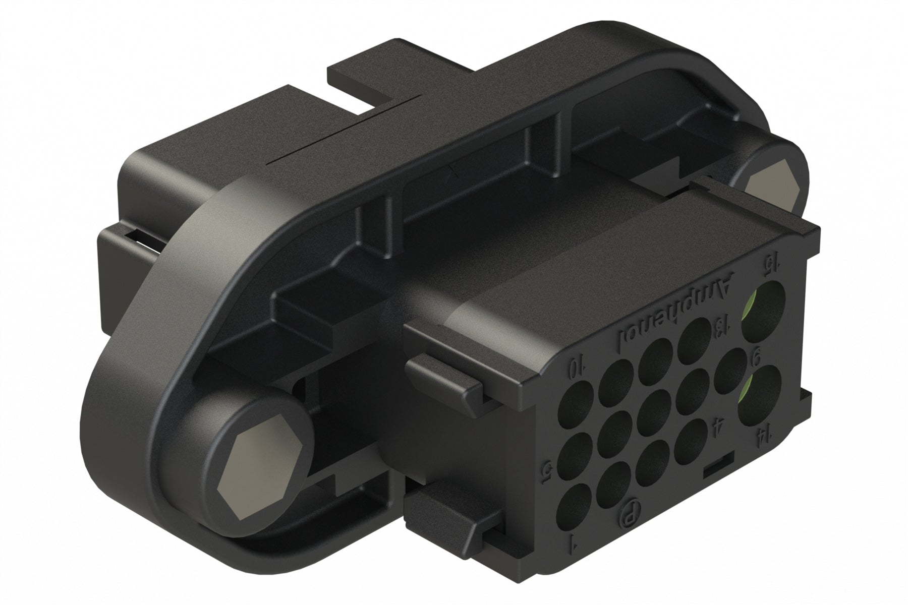 AT16-15PB-PM11 15 Position Panel Mount Receptacle with Flange and End Cap, Pin, Keyed B, Reduced Diameter Seal, Black