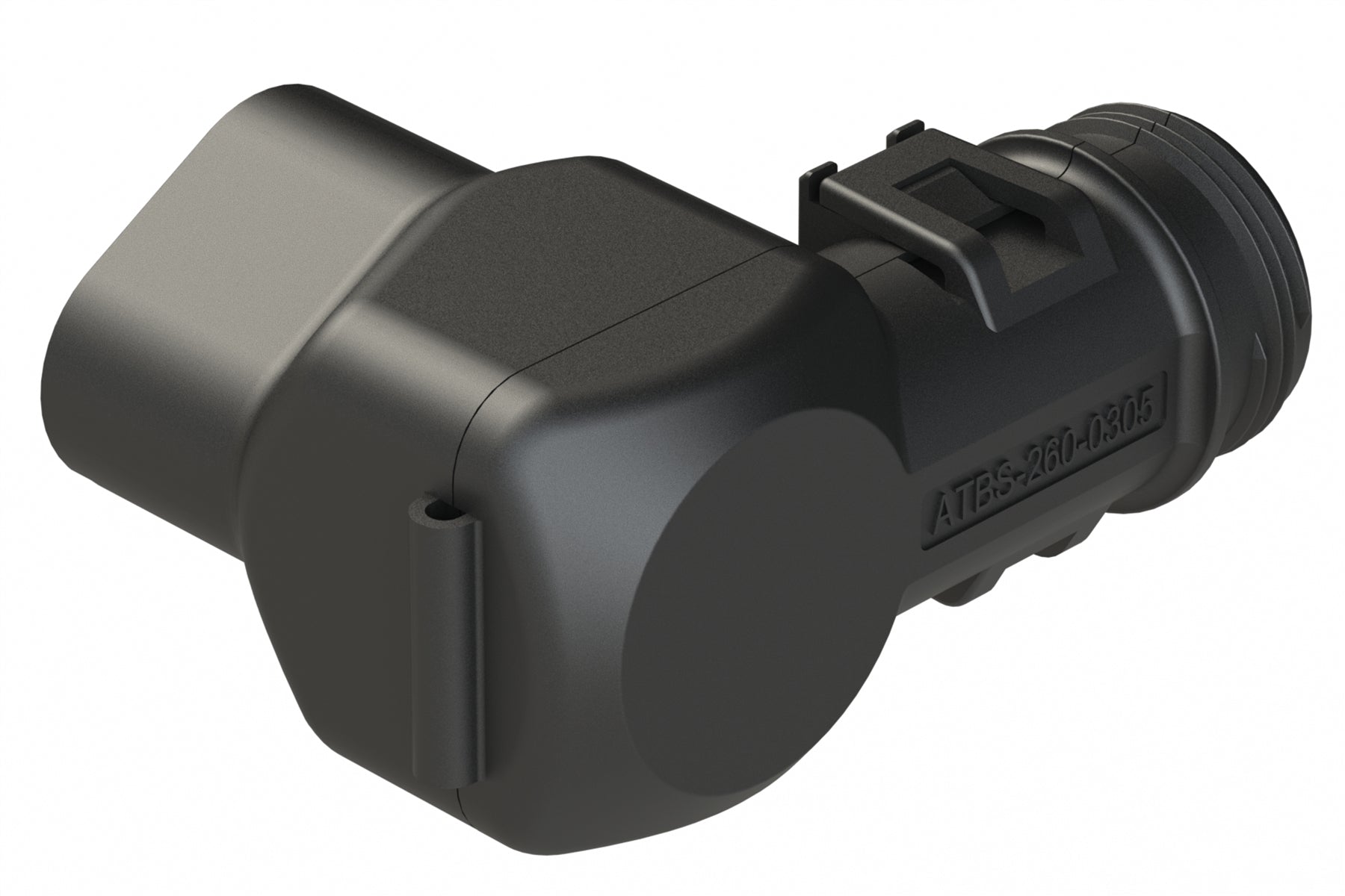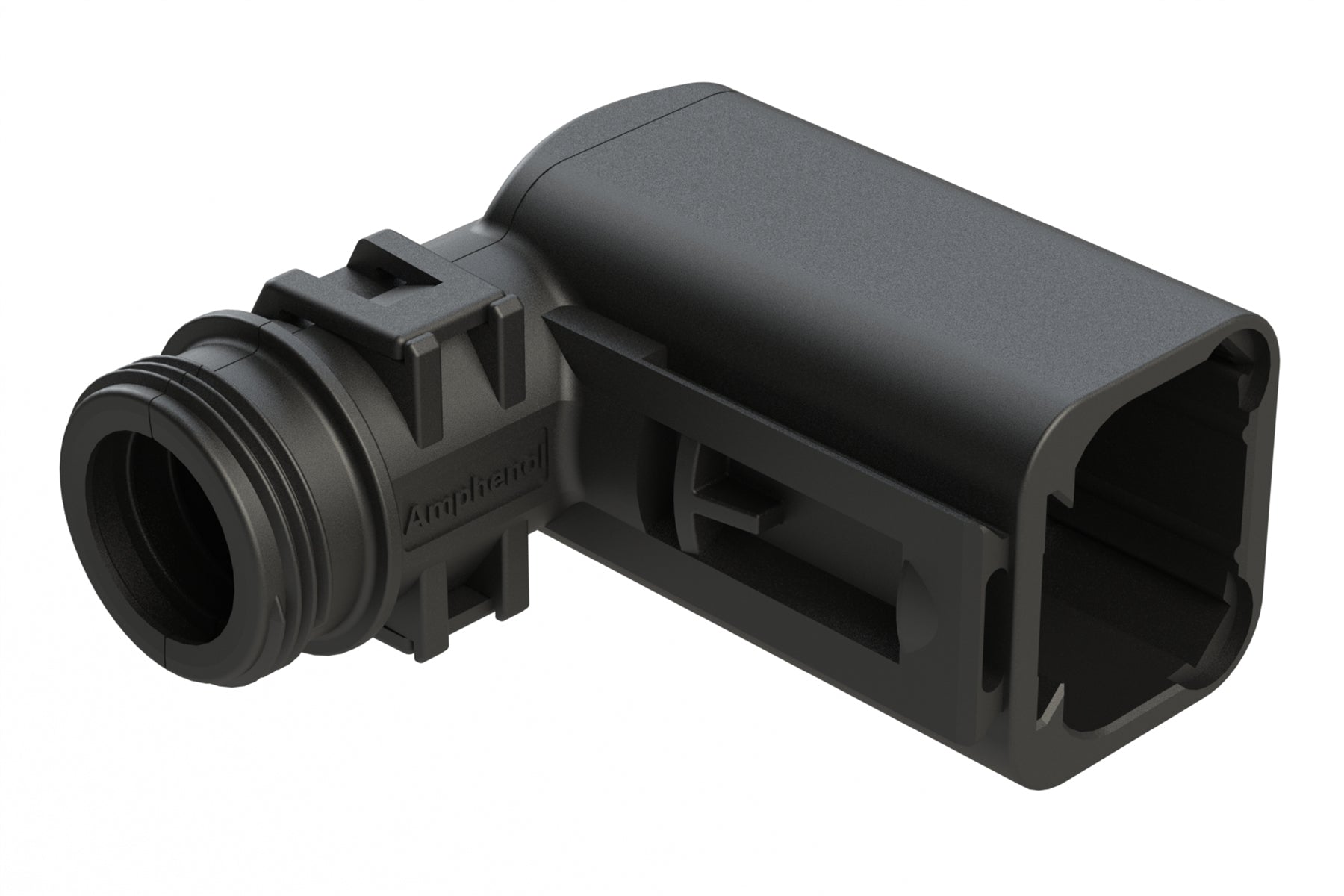 ATBS-238-0405 Backshell for 4 Position Receptacles, 90°. Cable Exit Designed for Corrugated Tube NW 6, 7.5 ,8.5 & 10. Enhanced Dovetail for Mounting Clips