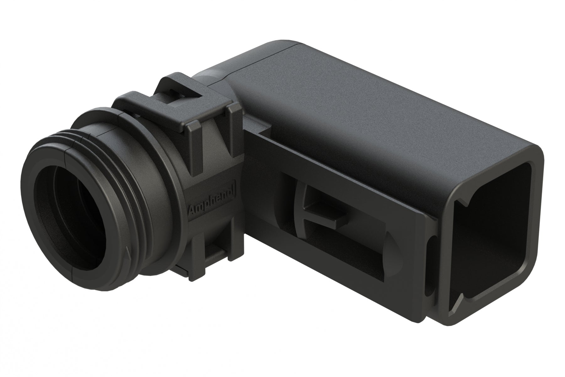 ATBS-258-0205 Backshell for 2 Position Receptacles, 90°, with Strain Relief. Enhanced Dovetail for Mounting Clips