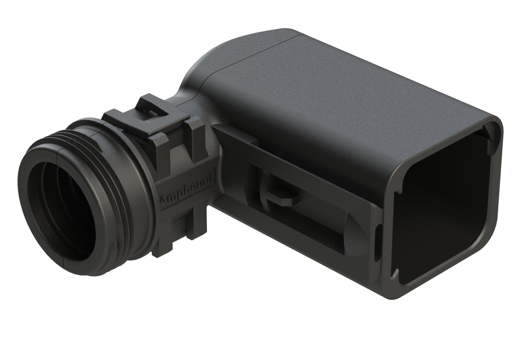 ATBS-270-0605 Backshell for 6 Position Receptacles, 90°, with Strain Relief. Cable Exit Designed for Corrugated Tube NW8.5, 10, 13. Enhanced Dovetail for Mounting Clips