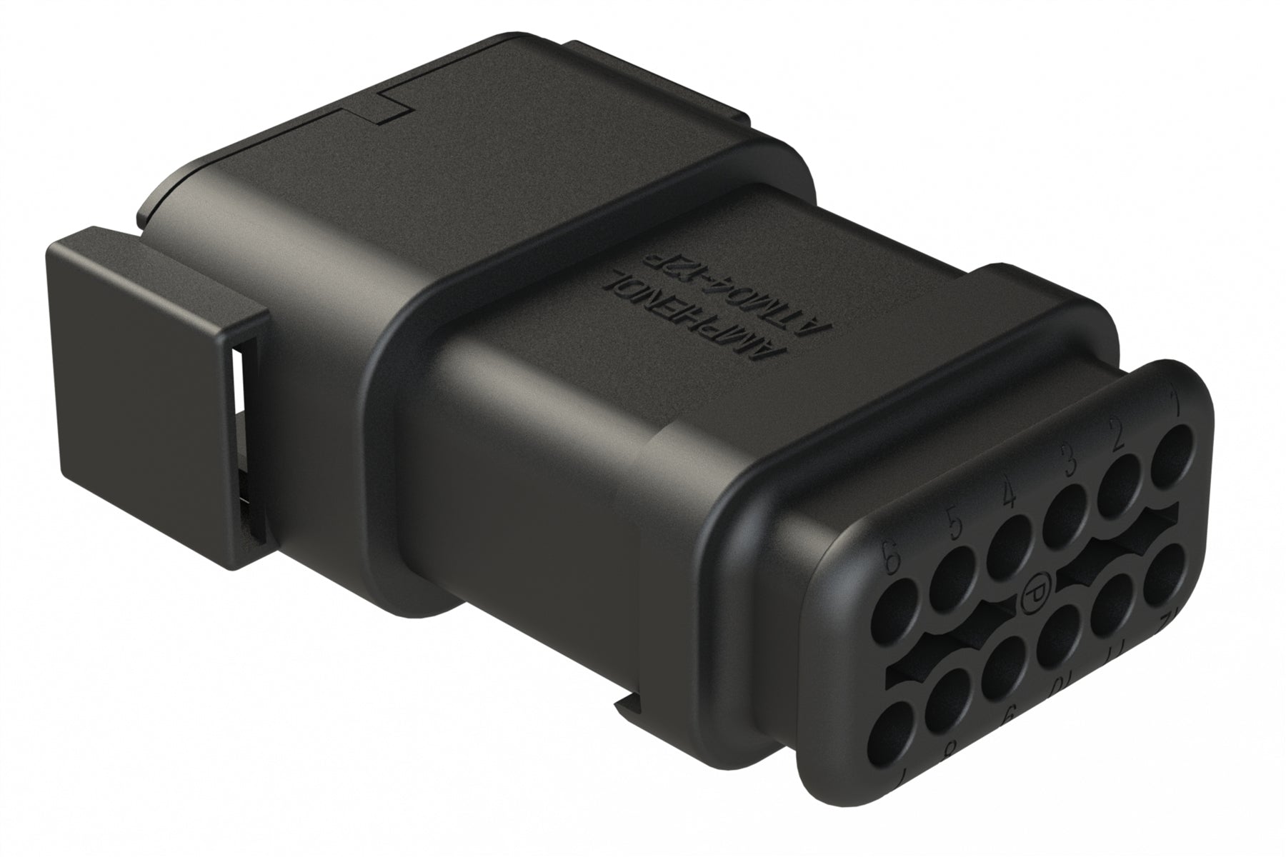 ATM04-12PB-SR1BK 12 Position, Receptacle, Pin, Standard Diameter Rear Seal (Red), SR01 Strain Relief, Keyed B, Black Body (Requires Wedgelock AWM-12P.). DTM04-12PB-E007