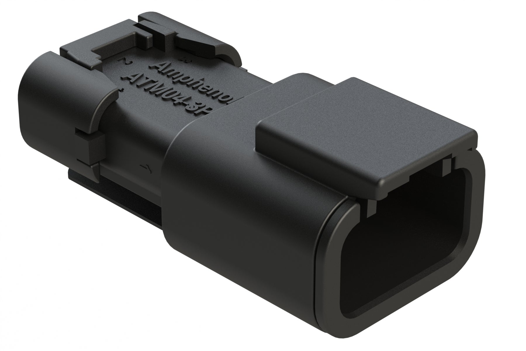 ATM04-3P-SF01BLK 3 Position Receptacle, Pin, Snap-Fit End Cap, Black. DTM04-3P-E005