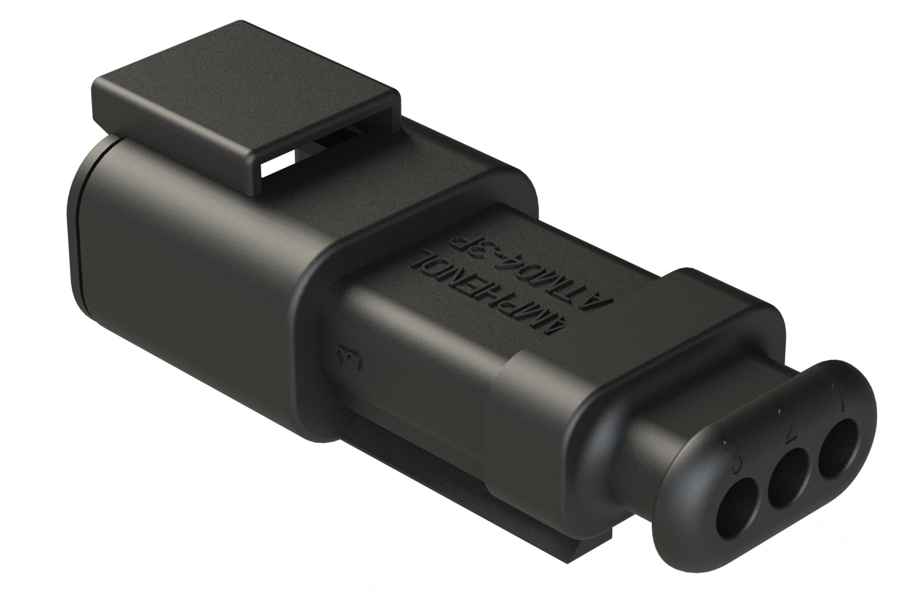 ATM04-3P-SR01BK 3 Position, Receptacle, Pin, Standard Diameter Rear Seal (Red), SR01 Strain Relief, Black Body (Requires Wedgelock AWM-3P.)
