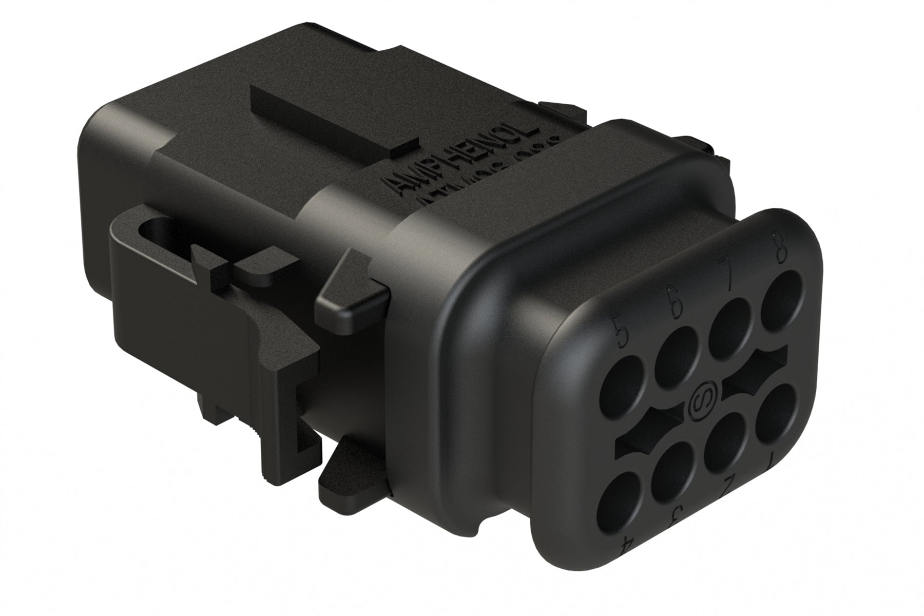 ATM06-08SB-SR1BK 8 Position, Plug, Socket, Standard Diameter Rear Seal (Red), SR01 Strain Relief, Keyed B, Black Body (Requires Wedgelock AWM-8S.). DTM06-08SB-E007