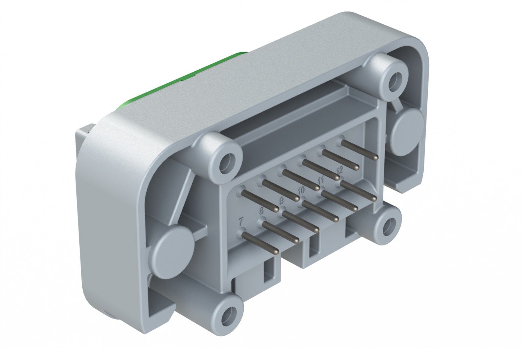 12 Position Flange Mount PCB Receptacle, Grey, Tin Plated Contacts Included. Keyed C