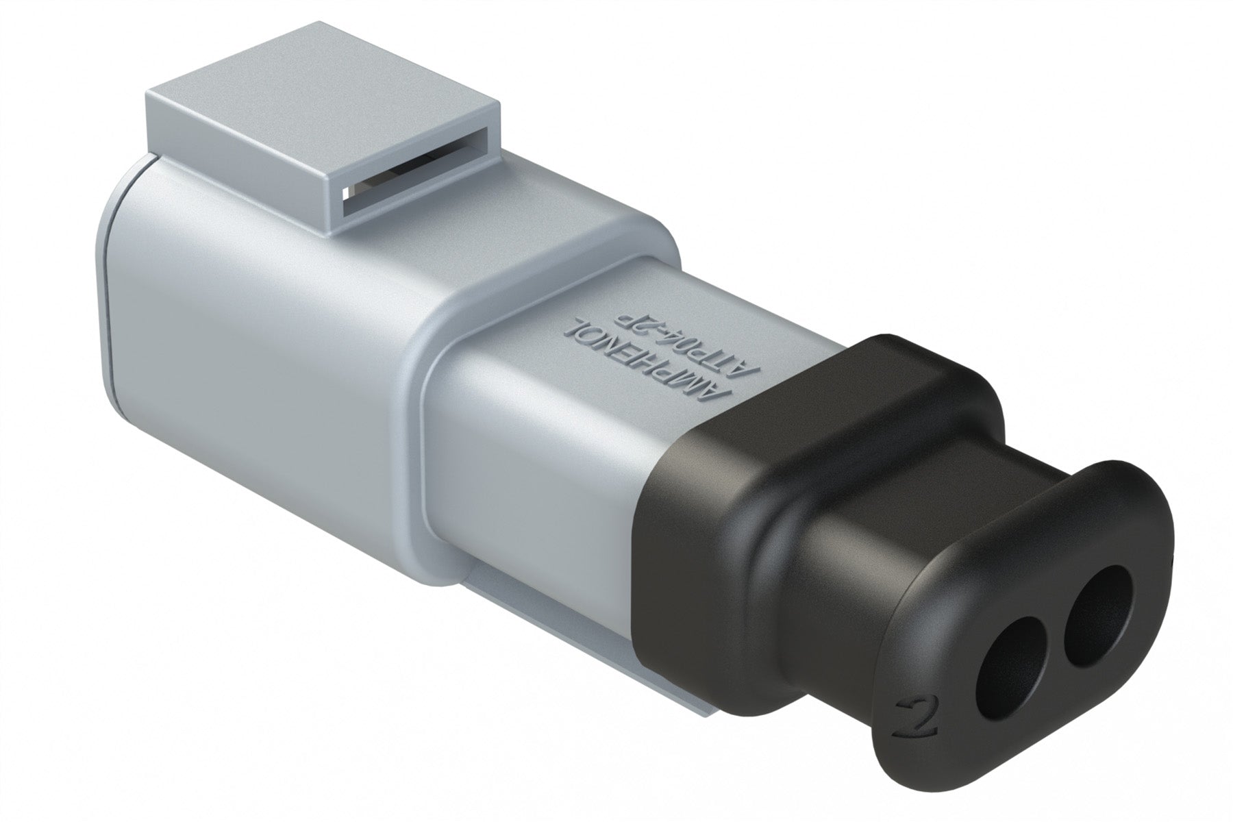 ATP04-2P-SR01 2 Position Receptacle, Pin, Strain Relief, Grey Body (Requires Wedgelock AWP-2P)