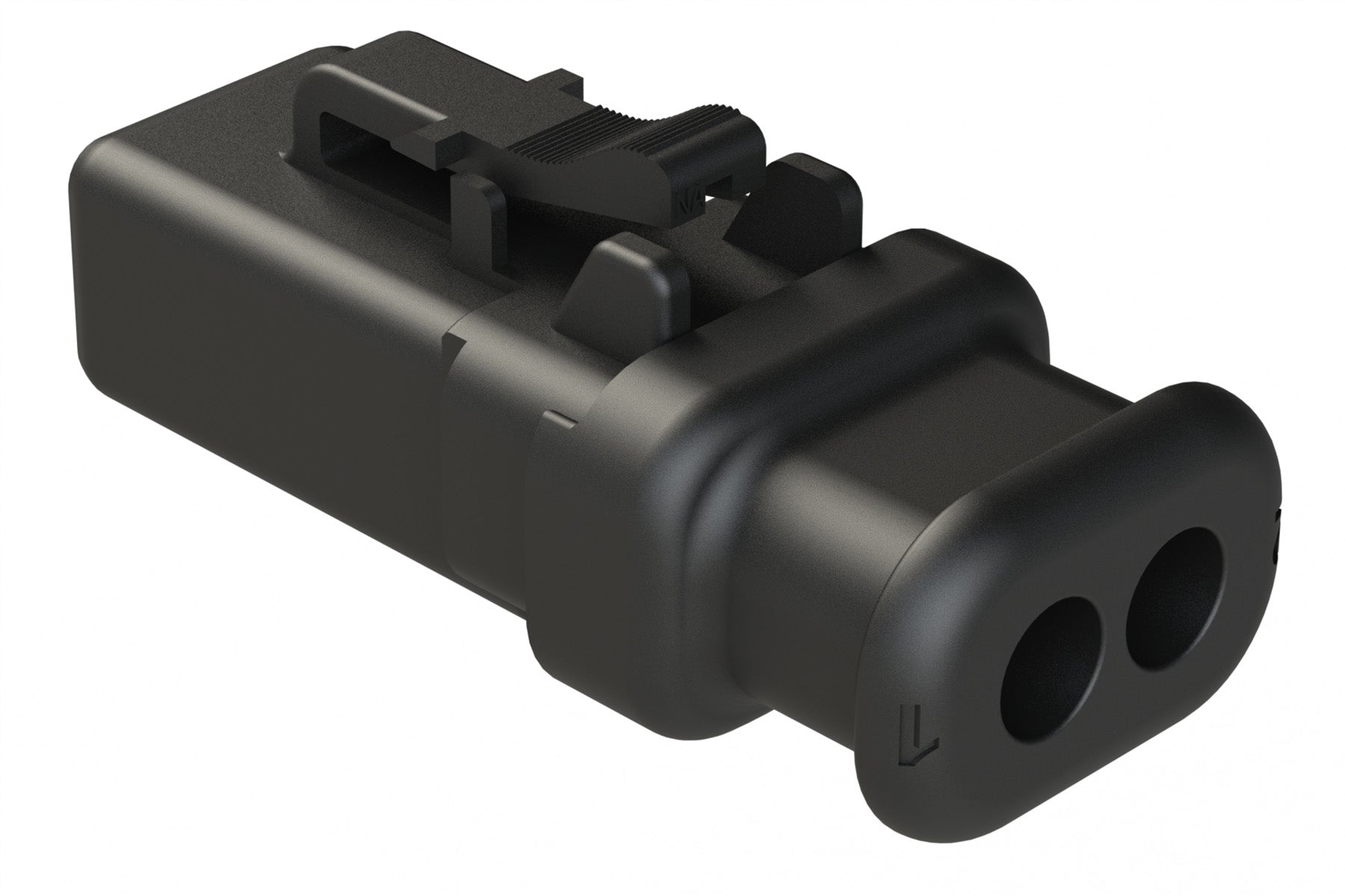 ATP06-2S-SR01BK 2 Position Plug, Socket, Strain Relief, Black Body (Requires Wedgelock AWP-2S). DTP06-2S-EE01