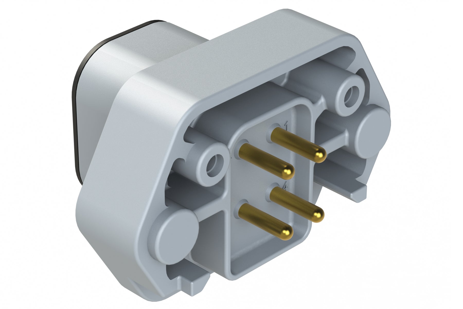 4 Position PCB Receptacle with Flange, Pin, Gold Plated, Self-Threading, Gasket, Keyed A, Grey
