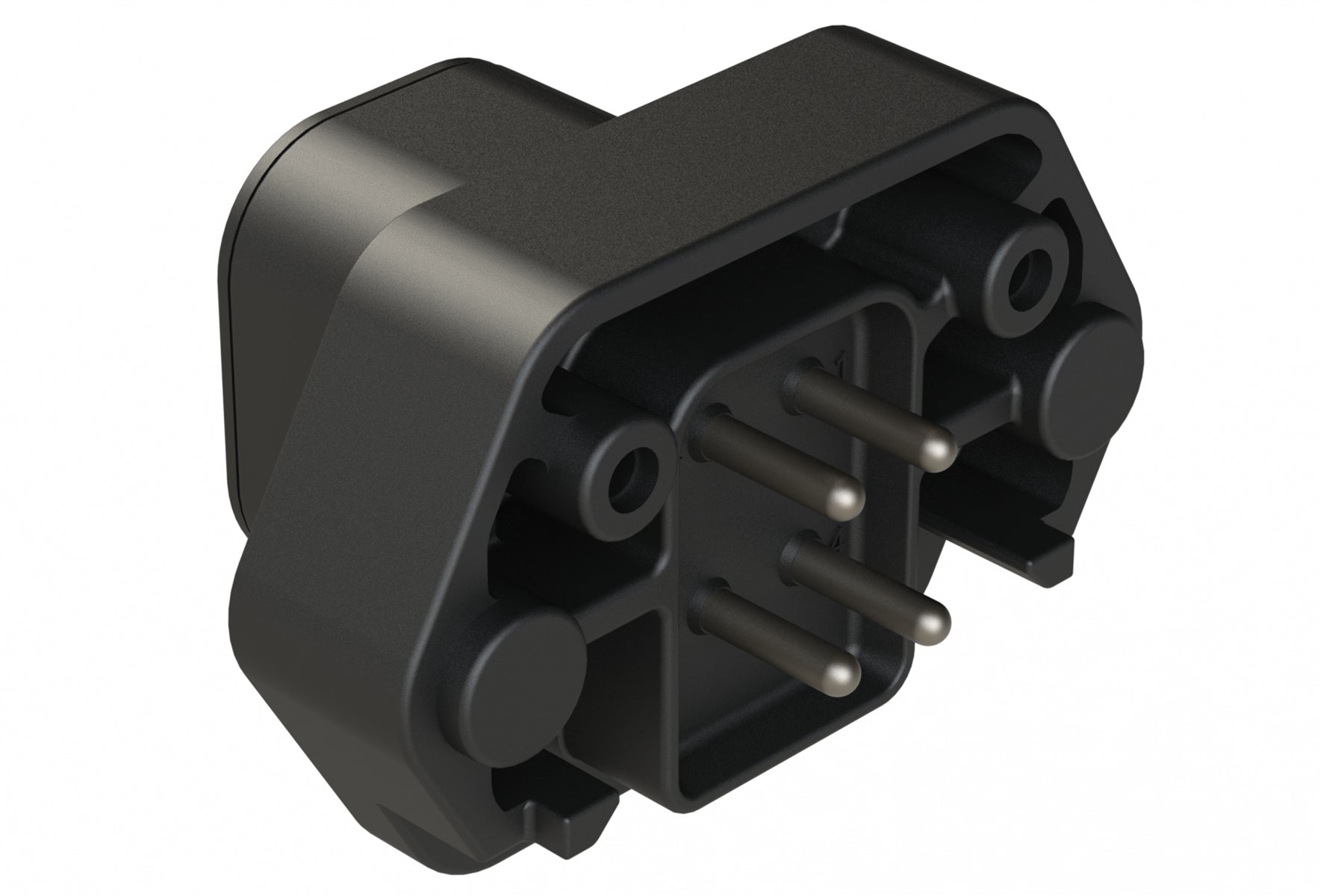 4 Position PCB Receptacle with Flange, Pin, Tin Plated, Self-Threading, Gasket, Keyed B, Green