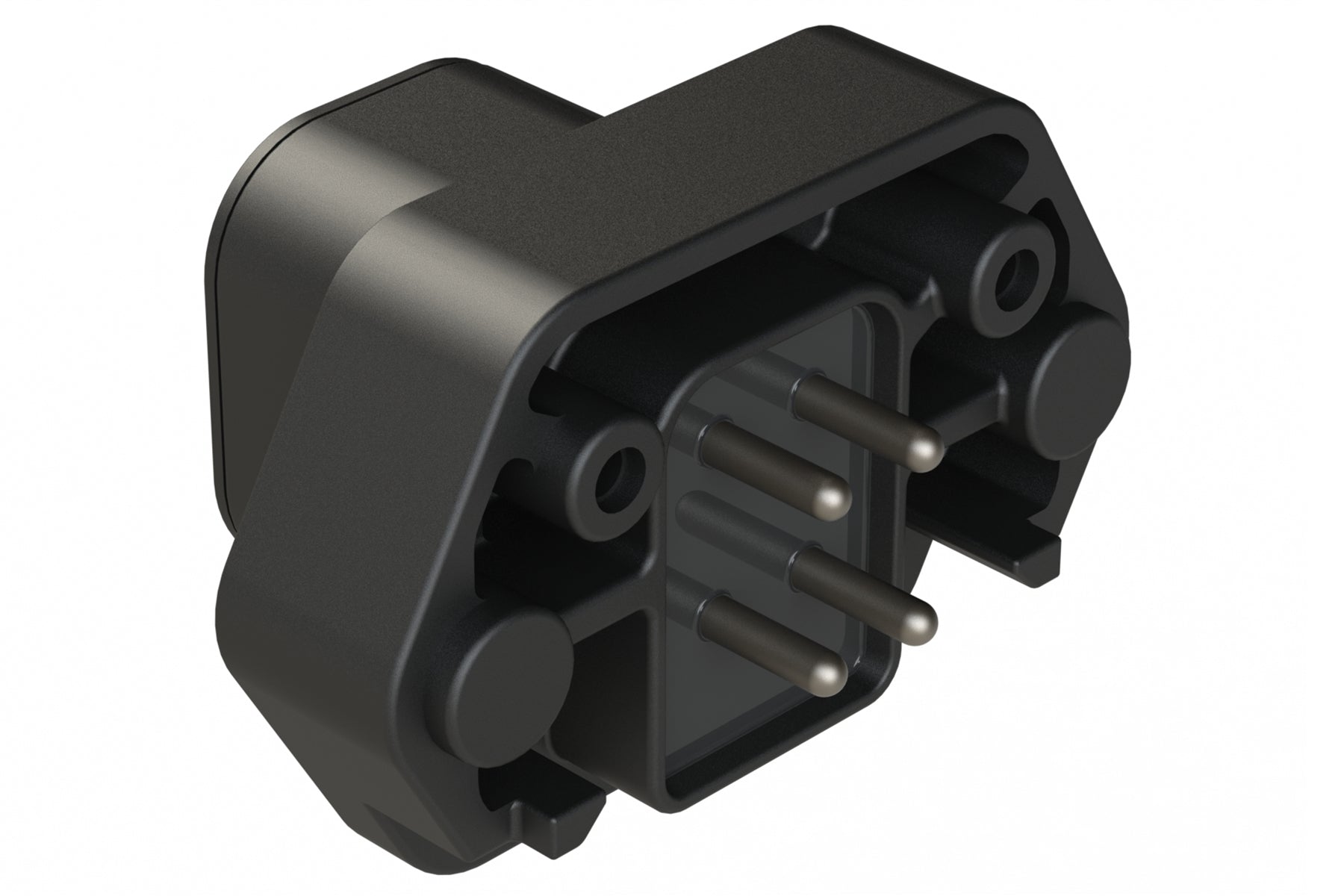 4 Position PCB Receptacle with Flange, Pin, Tin Plated, Self-Threading, Gasket, Potted, Keyed B, Brown