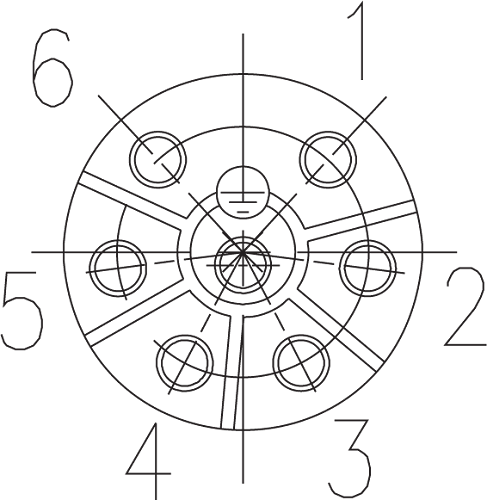 6+PE Male, straight cable connector with strain relief and clamping ring. Crimp contacts sold separately. Available in gold or silver plating.