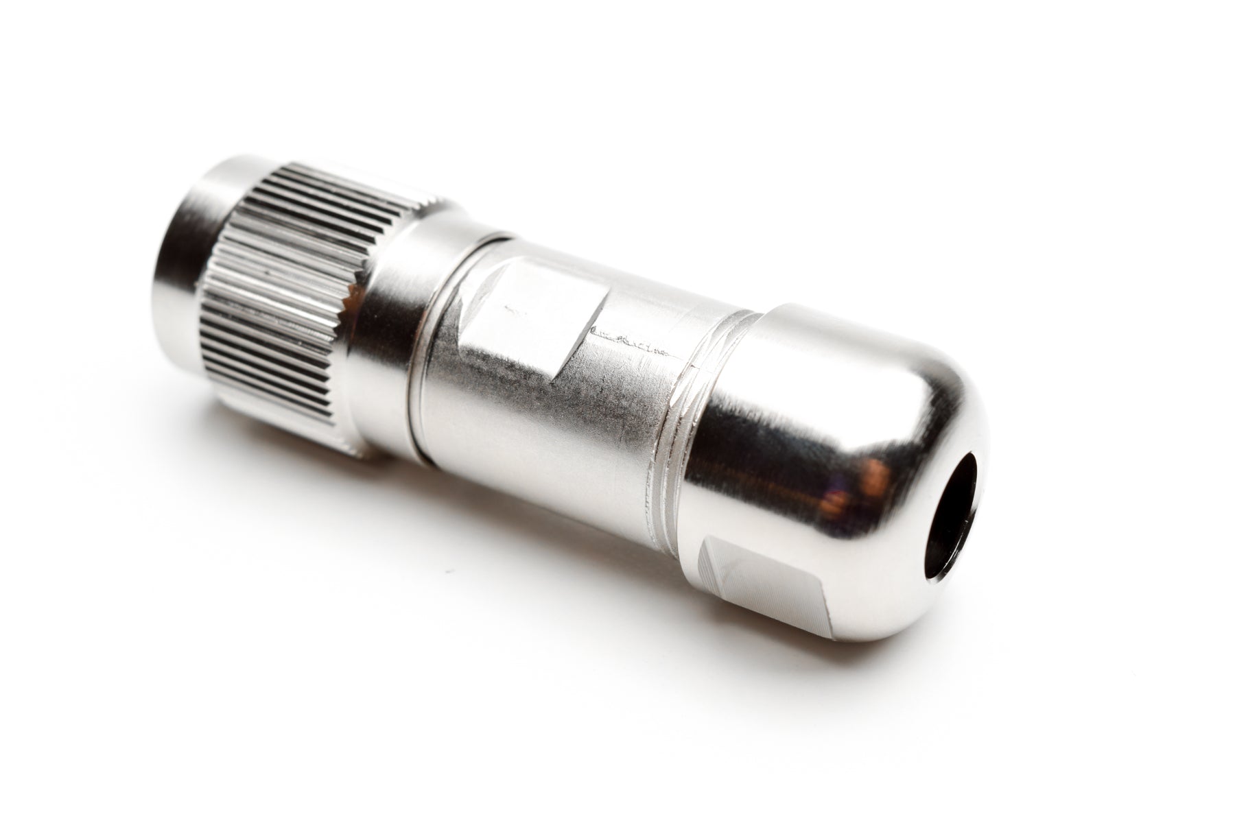 C091 31D004 100 4 Female Connectors with internal strain relief and metal locking ring. Complete EMI shielding in the fully mated and locked position (EMI security). Screw locking according to IEC 61076-2-106. Fully intermateable with C091D connectors.