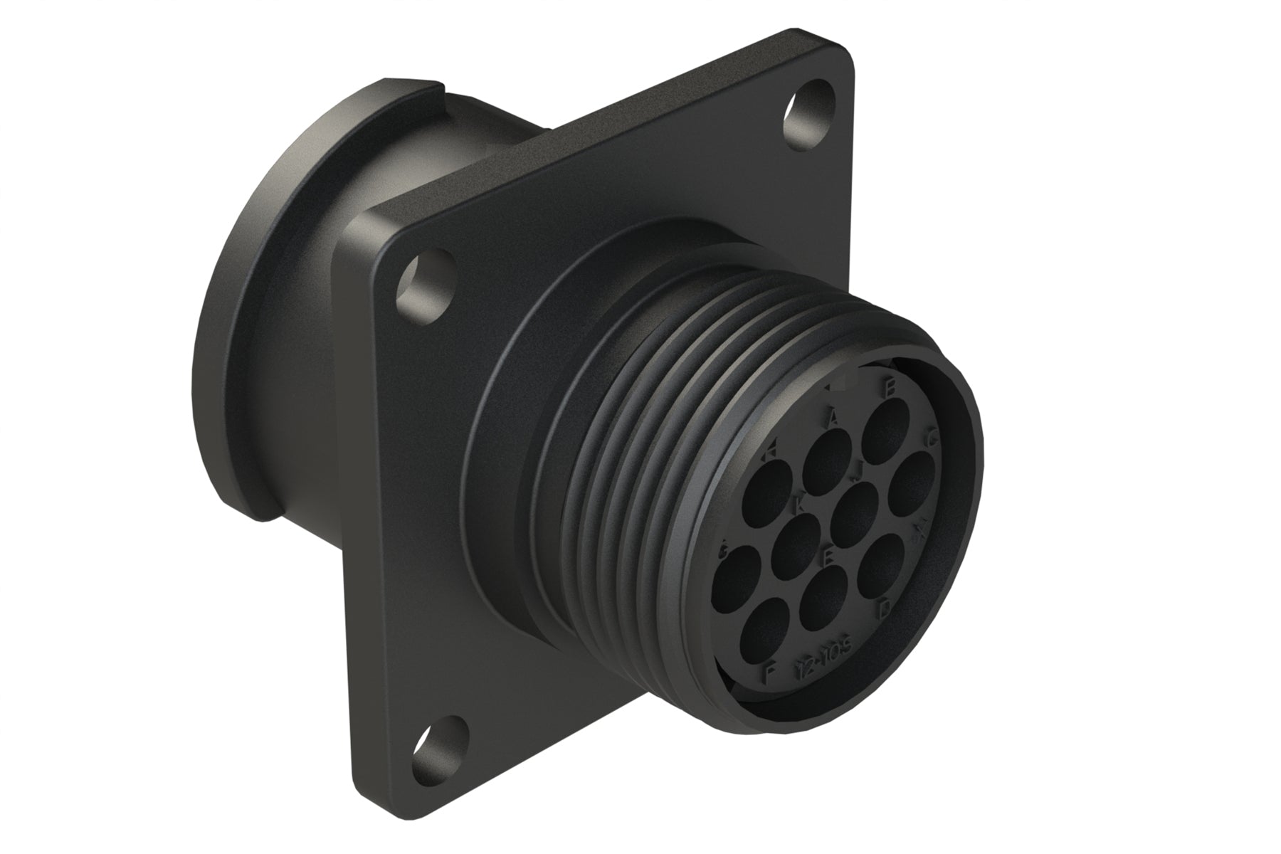 Receptacle, Square Flange, 10 Position, Female, Shell Size 12, Silicone Seal, Auto-Lock