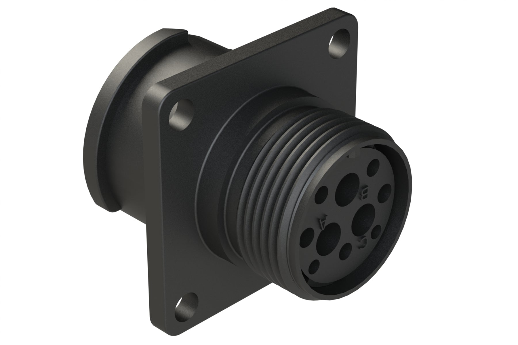 Receptacle, Square Flange, 3 Position, Female, Shell Size 12, Silicone Seal, Auto-Lock