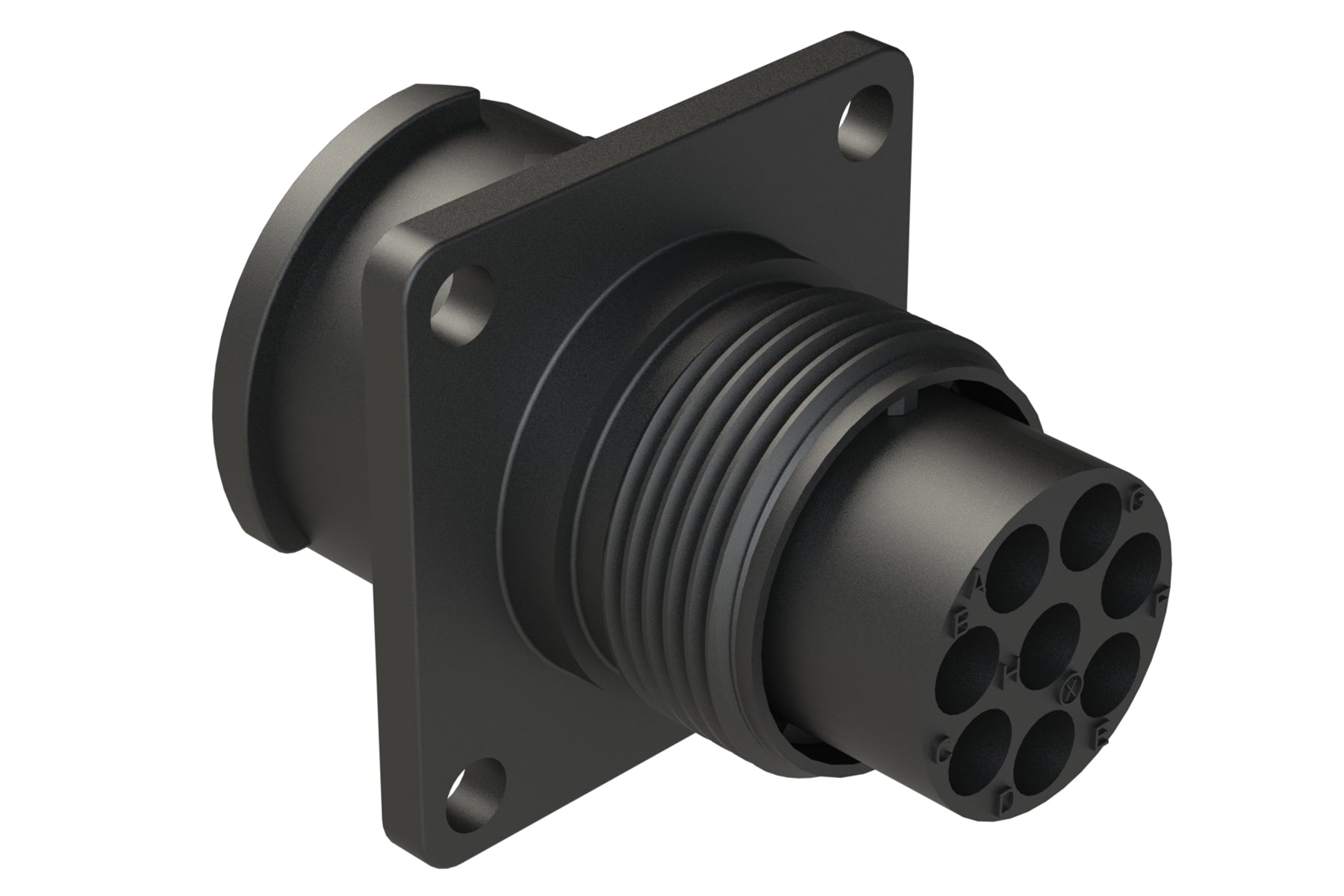 Receptacle, Square Flange, 8 Position, Male, Shell Size 12, Silicone Seal, Auto-Lock
