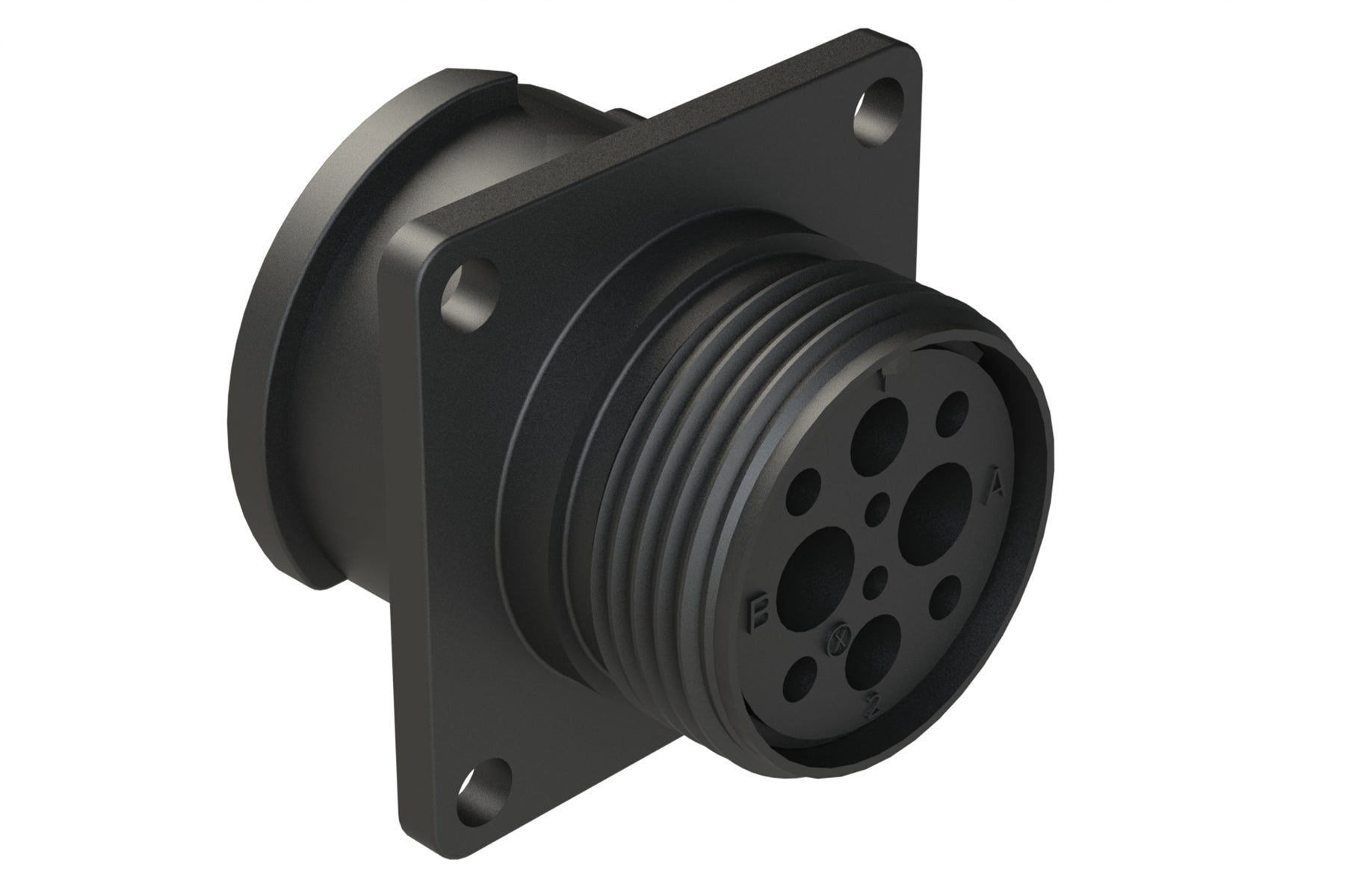 Receptacle, Square Flange, 4 (2+2) Position, Female, Shell Size 14, Silicone Seal, Auto-Lock