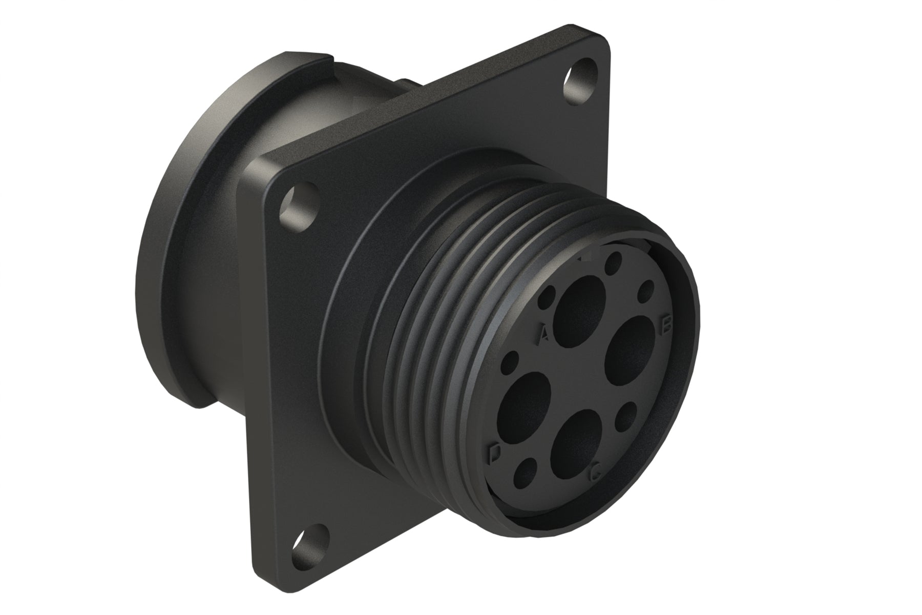 FLS014N4S03 Receptacle, Square Flange, 4 Position, Female, Shell Size 14, Silicone Seal, Auto-Lock